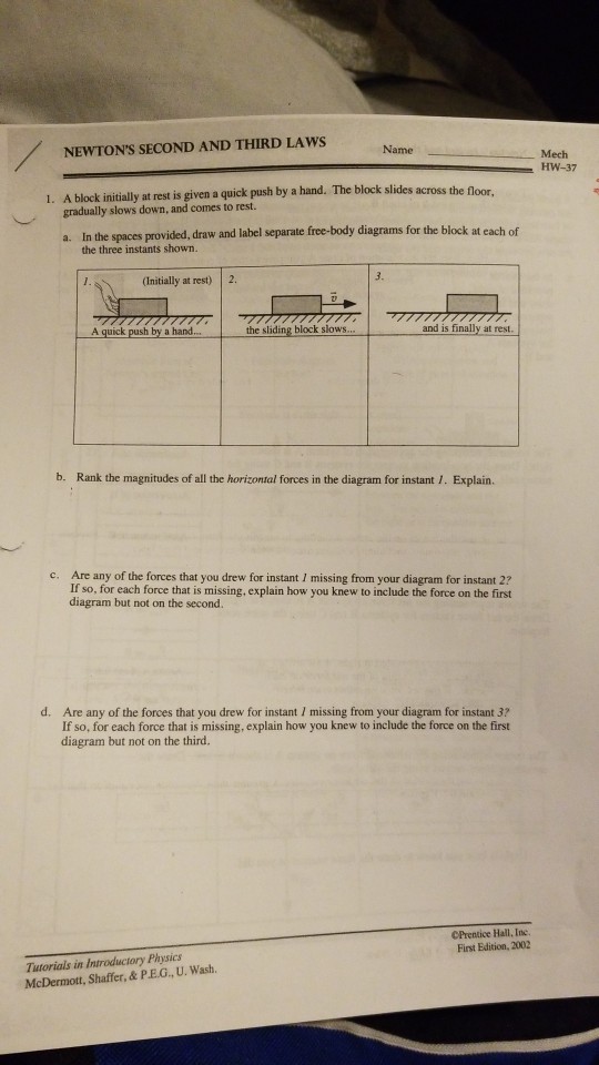 Newton S Second And Third Laws Name Mech Hw 37 A Chegg Com